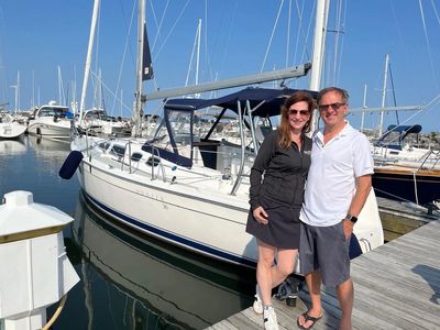 Funsail is truly a family operation. The skipper sails alongside first mate Susan, and our most popular crew member is Olive the SeaDog, often spotted on board in her life jacket and ready to greet new sailors.